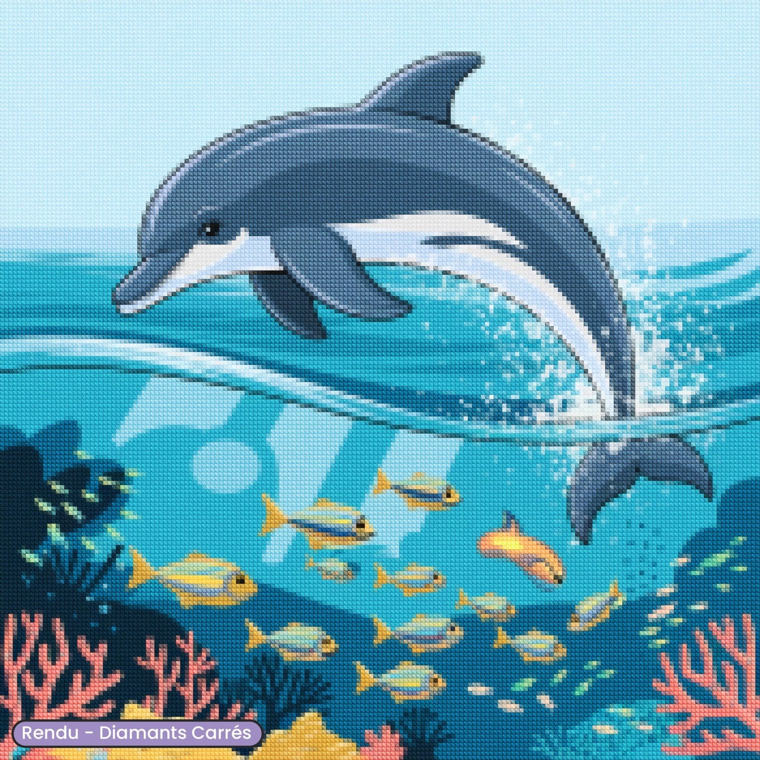 Vivez la liberté de l'océan avec cette broderie diamant représentant un dauphin en plein saut. Ce kit de diamond painting vous invite à créer une œuvre pleine de mouvement et de vivacité, idéale pour égayer votre espace.