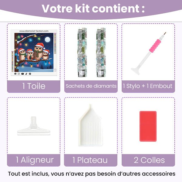 Bring a magical atmosphere to your interior with this kit of Diamond Painting representing hibous perched on a tree decorated for Christmas. Ideal for enthusiasts of Diamond embroidery, this sparkling and detailed model offers a relaxing and creative activity while making a unique work that will illuminate your holiday decoration. Perfect for offering or adding a magical and natural touch to your home!