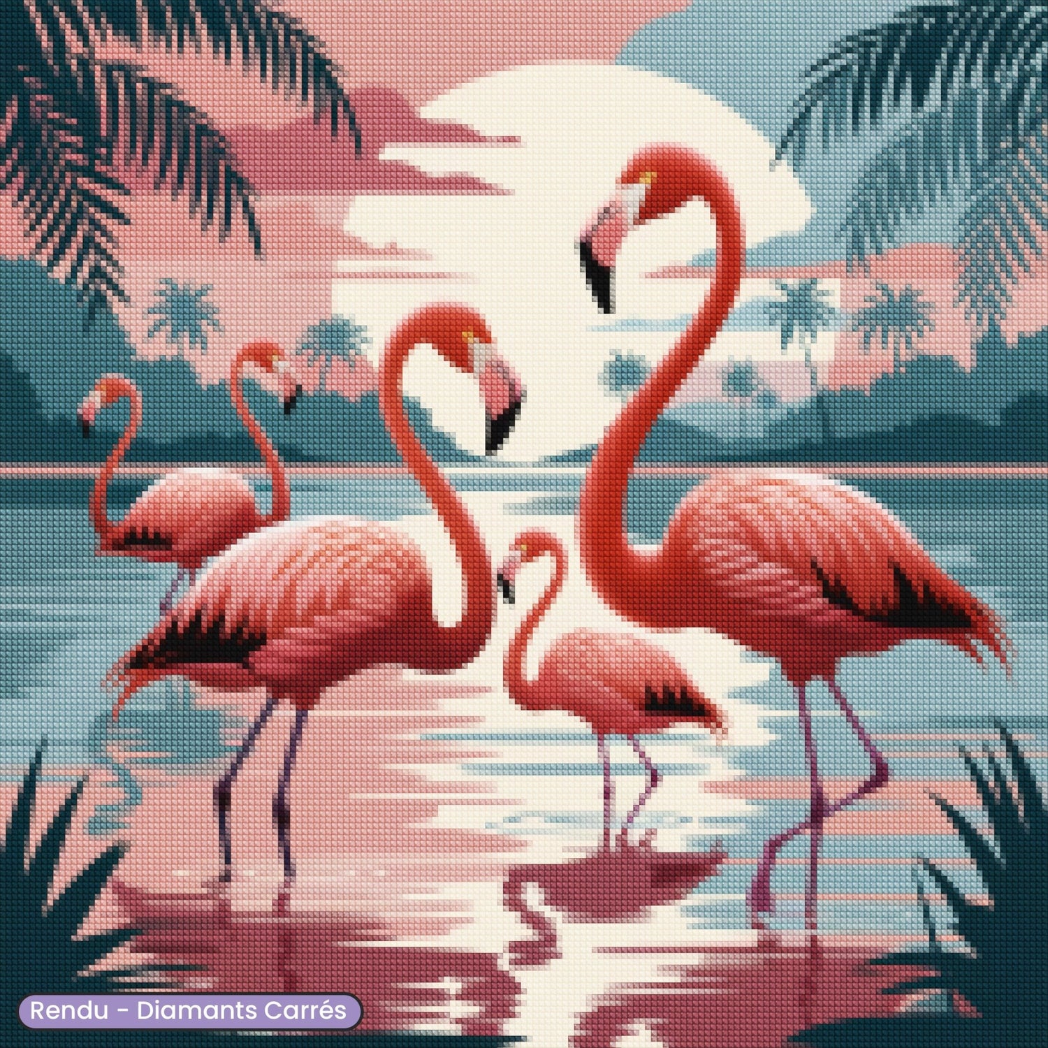 Create a warm and exotic atmosphere with this Diamond embroidery representing flamingos at sunset. This kit of Diamond Painting offers you a creative and soothing moment, while bringing a colorful and elegant touch to your interior.