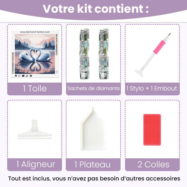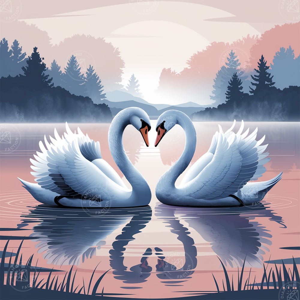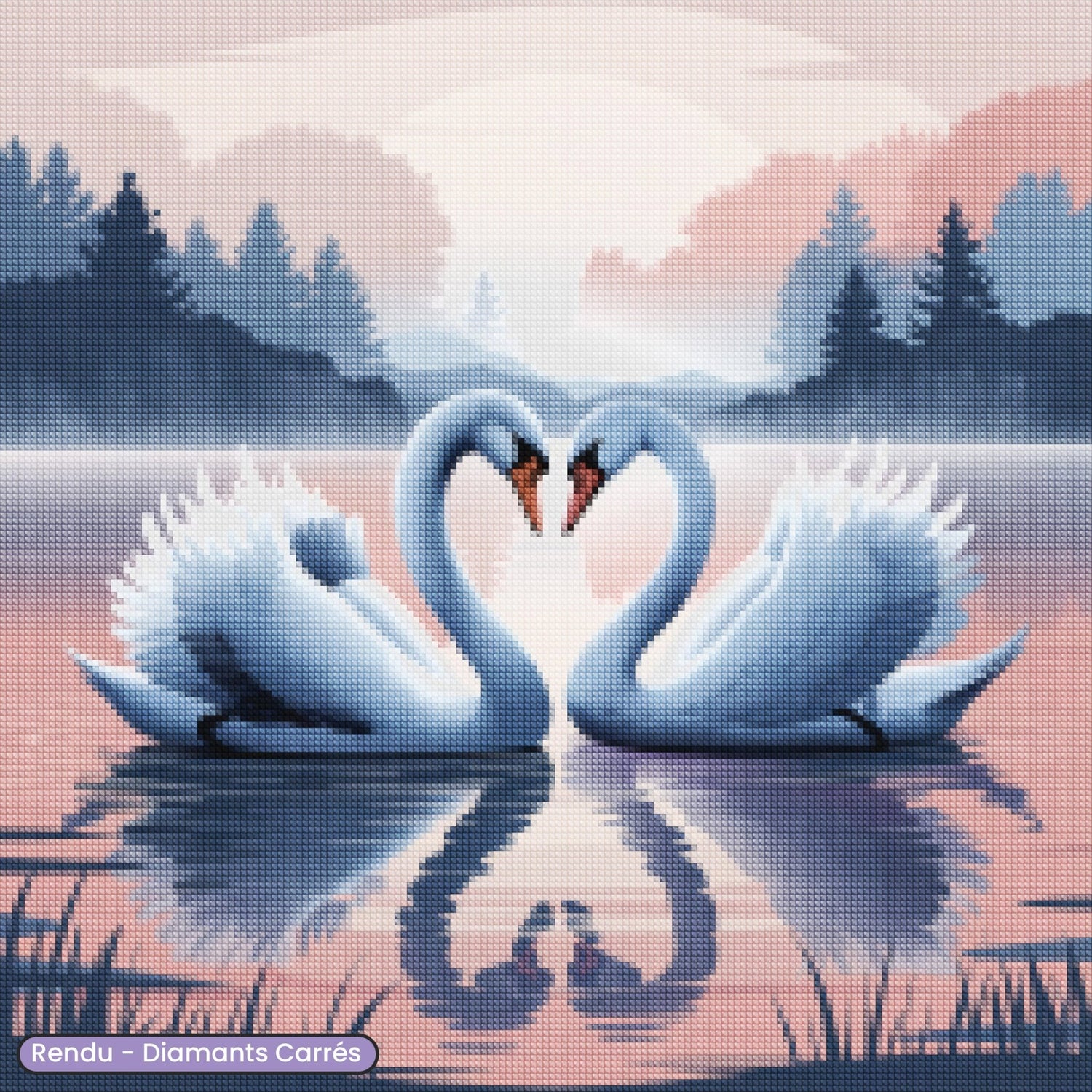 Discover the beauty of elegance with this Diamond embroidery representing two swans forming a romantic sign. This kit of Diamond Painting Allows you to capture the grace and harmony of these majestic birds, adding a romantic touch to your decoration.