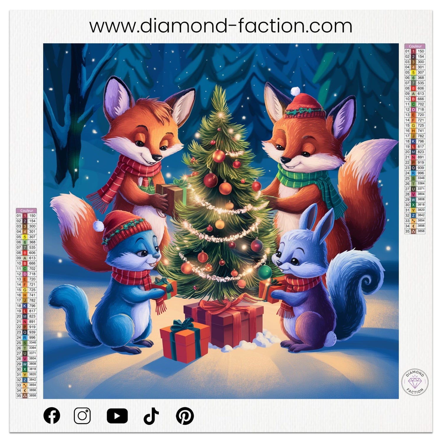 Bring the magic of the holidays to your interior with this superb kit of Diamond Painting representing animals around a Christmas tree. This Diamond embroidery, perfect for the winter season, offers you a moment of creative relaxation while making a festive and sparkling decoration. Easy to make, this detailed and colorful model will add a warm and unique touch to your home to celebrate Christmas with brilliance.