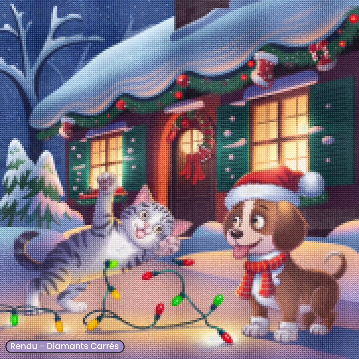 Bring a touch of tenderness and magic to your decoration with this kit of Diamond Painting Staging a dog and a cat celebrating Christmas together. Specially designed for lovers of Diamond embroidery, this detailed and sparkling model is perfect for a creative and relaxing activity while making a luminous work that will embellish your interior during the holidays. An ideal gift idea for animal lovers and Christmas magic!