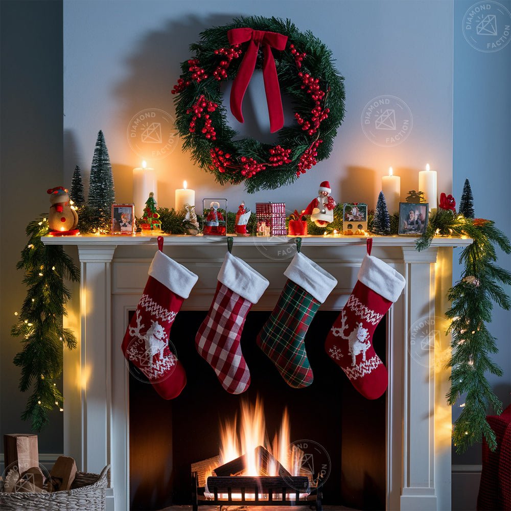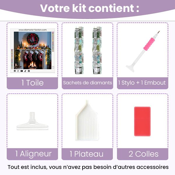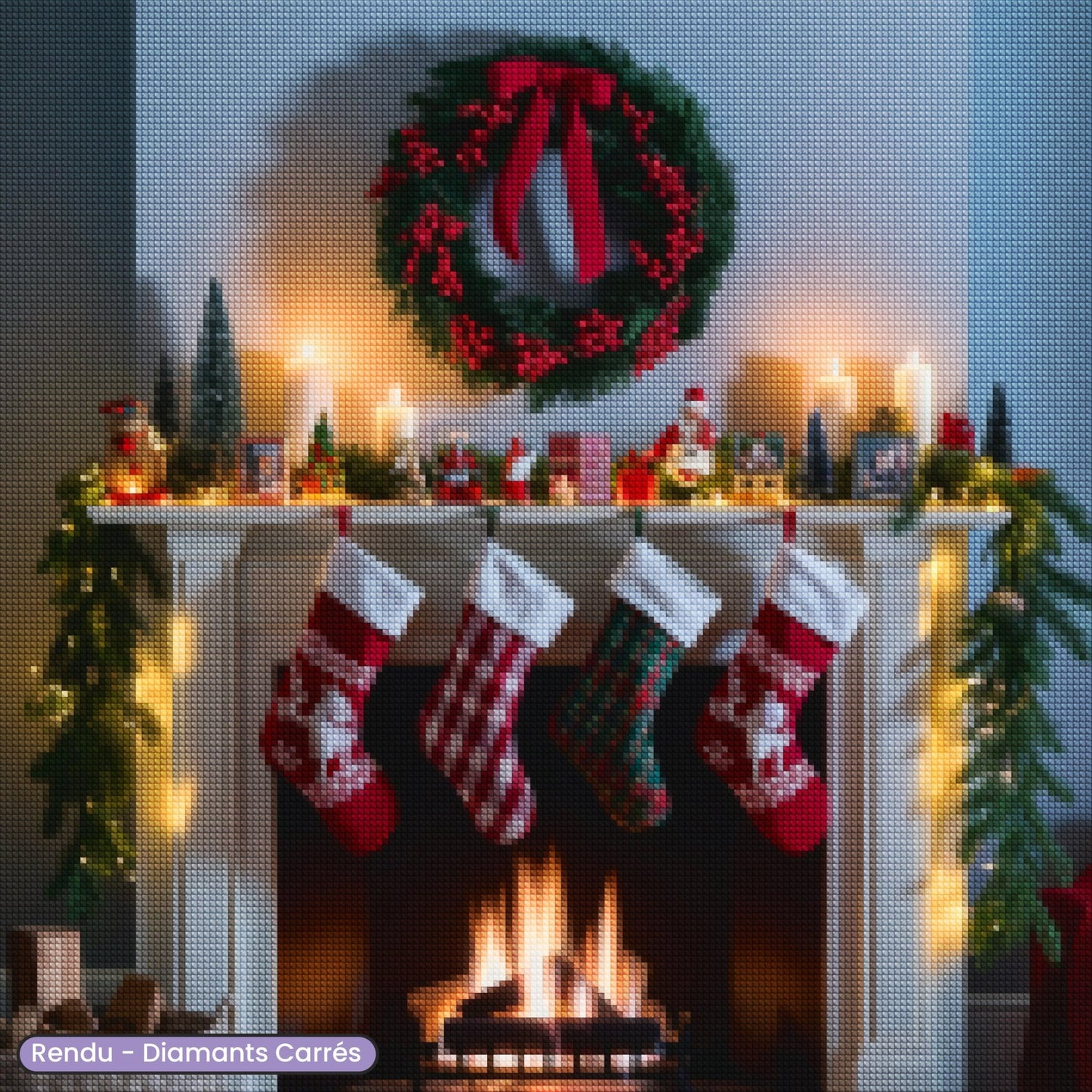 Immerse yourself in the warm holiday atmosphere with this kit of Diamond Painting Representing Christmas socks suspended near the fireplace. Ideal for enthusiasts of Diamond embroidery, this festive and sparkling design offers you a relaxing activity while creating a unique and bright decoration to celebrate Christmas magic. Perfect for offering or having fun during the holiday season!