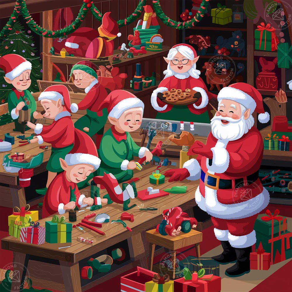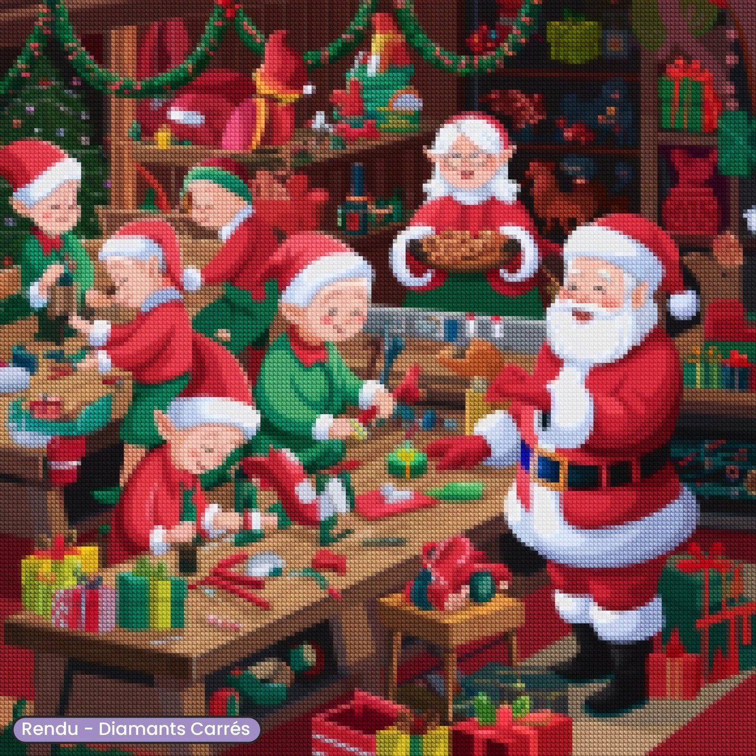 Immerse yourself in the magical atmosphere of Santa's workshop with this kit of Diamond Painting illustrating the manufacture of Christmas gifts. Designed for enthusiasts of Diamond embroidery, this festive and sparkling model offers a creative and soothing activity, while making a unique decoration that will bring warmth and enchantment to your interior during the holidays. Ideal for relaxing or giving as a gift!
