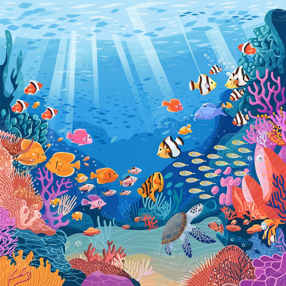 Immerse yourself in the fascinating ocean universe with this Diamond embroidery Staging a magnificent marine fauna. This kit of Diamond Painting offers you a moment of creative relaxation, perfect for sea enthusiasts and its creatures. Each meticulous detail allows you to recreate the beauty and diversity of underwater life, bringing a refreshing and soothing touch to your interior decoration.