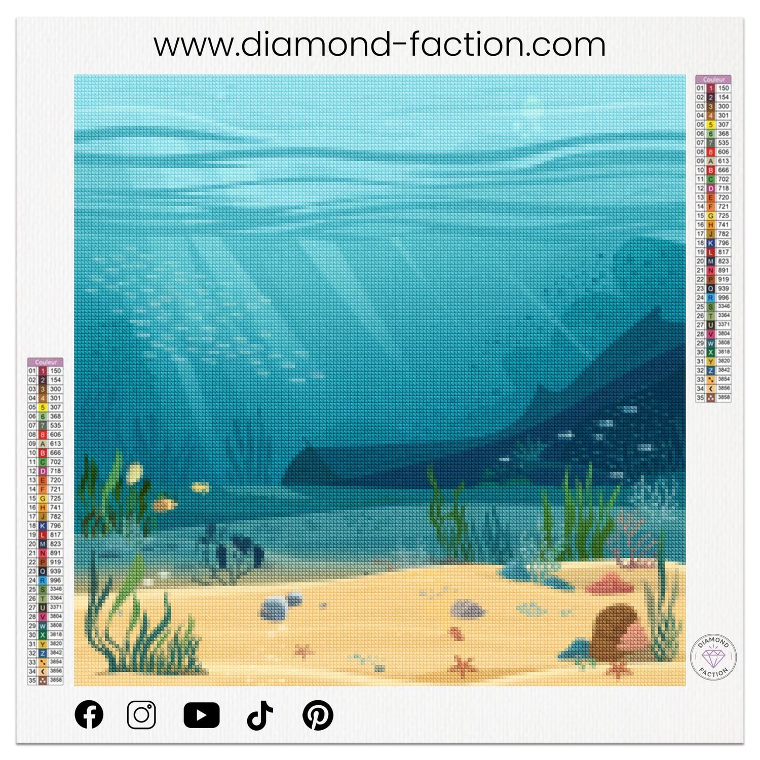 Explore the hidden beauty of the oceans with this Diamond embroidery representing a seabed rich in colors and life. This kit of Diamond Painting invites you to create a soothing and captivating underwater scene, ideal for sea lovers. Each meticulous detail gives life to a vibrating marine world, bringing a touch of escape and serenity to your interior decoration.