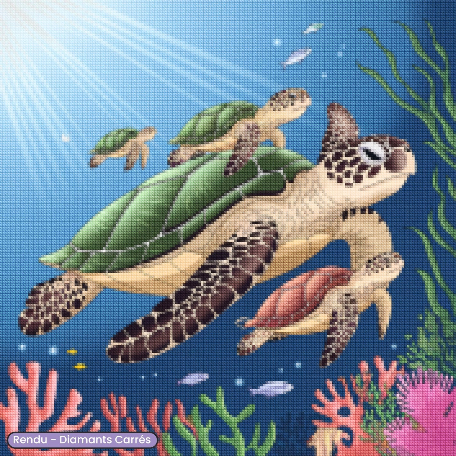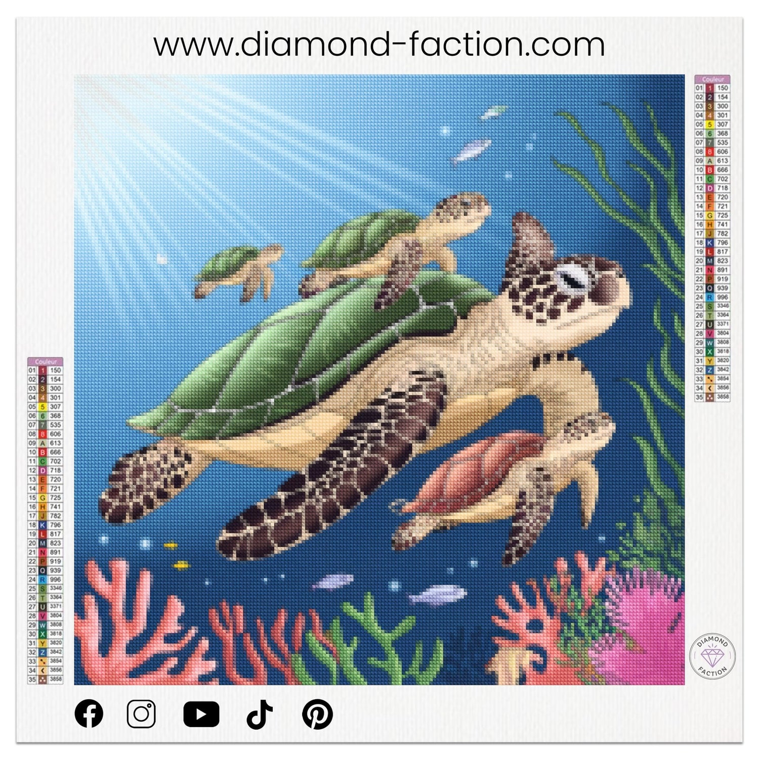 Discover the sweetness and serenity of a family of turtles with this Diamond embroidery. This kit of Diamond Painting offers you a creative and soothing experience, ideal for marine fauna lovers. Each meticulous detail highlights the tranquility and unity of this family, bringing a touch of calm and nature to your interior decoration.